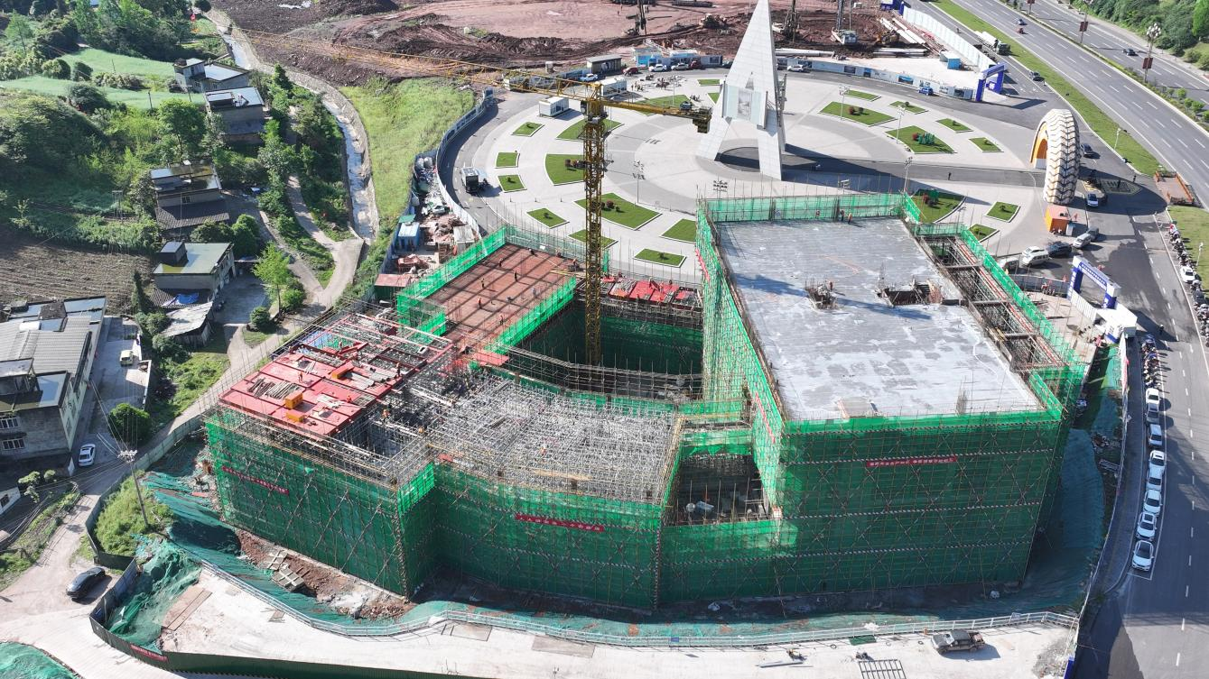 4月10日,中國(guó)·雅安318自駕大本營(yíng)主題博物館項(xiàng)目主體結(jié)構(gòu)順利完成封頂。