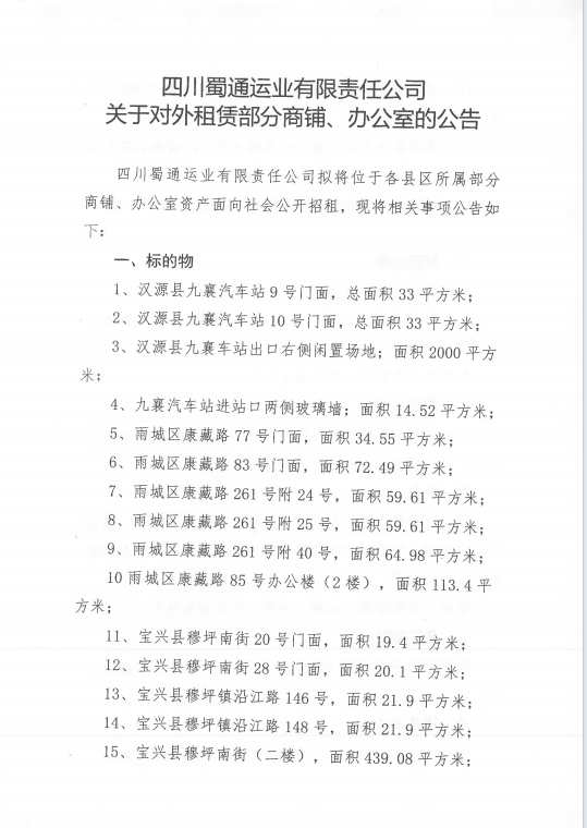 ËÄ´¨Êñͨß\˜I(y¨¨)ÓÐÏÞØŸÈι«Ë¾êP(gu¨¡n)ÓÚŒ¦Íâ×âÙU²¿·ÖéTÃæ¡¢Þk¹«ÊÒÙY®a(ch¨£n)µÄ¹«¸æ