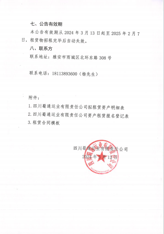 ËÄ´¨Êñͨß\˜I(y¨¨)ÓÐÏÞØŸÈι«Ë¾êP(gu¨¡n)ÓÚŒ¦Íâ×âÙU²¿·ÖéTÃæ¡¢Þk¹«ÊÒÙY®a(ch¨£n)µÄ¹«¸æ¸½¼þ