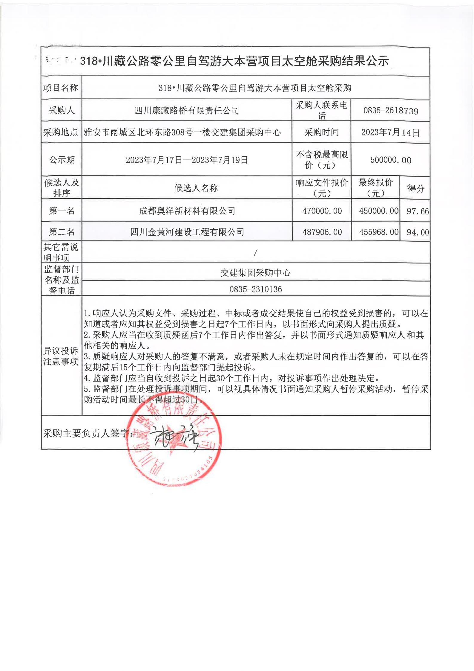 四川康藏路橋有限責任公司318·川藏公路零公里自駕游大本營項目太空艙采購結果公示