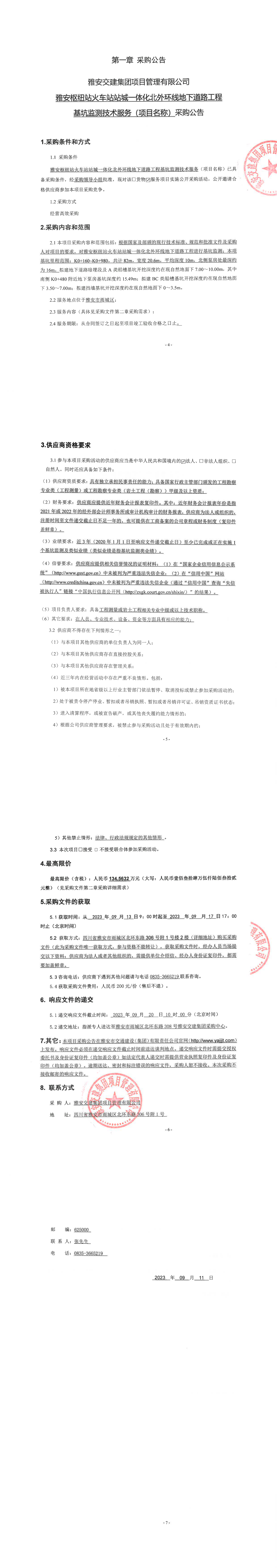 雅安交建集團(tuán)項(xiàng)目管理有限公司雅安樞紐站火車站站城一體化北外環(huán)線地下道路工程基坑監(jiān)測(cè)技術(shù)服務(wù)(項(xiàng)目名稱)采購公告