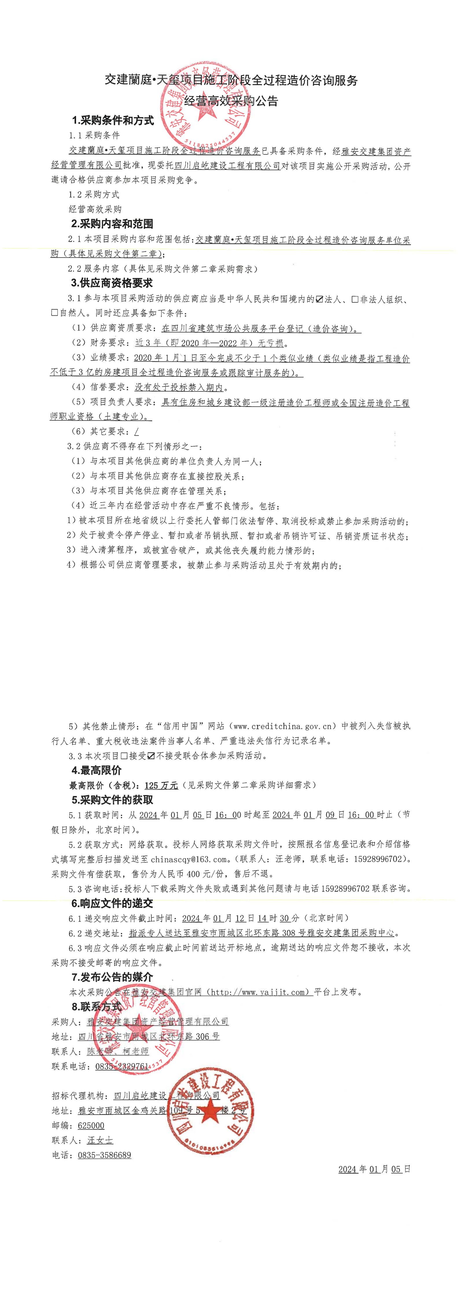 交建蘭庭·天璽項(xiàng)目施工階段全過程造價(jià)咨詢服務(wù)經(jīng)營高效采購公告