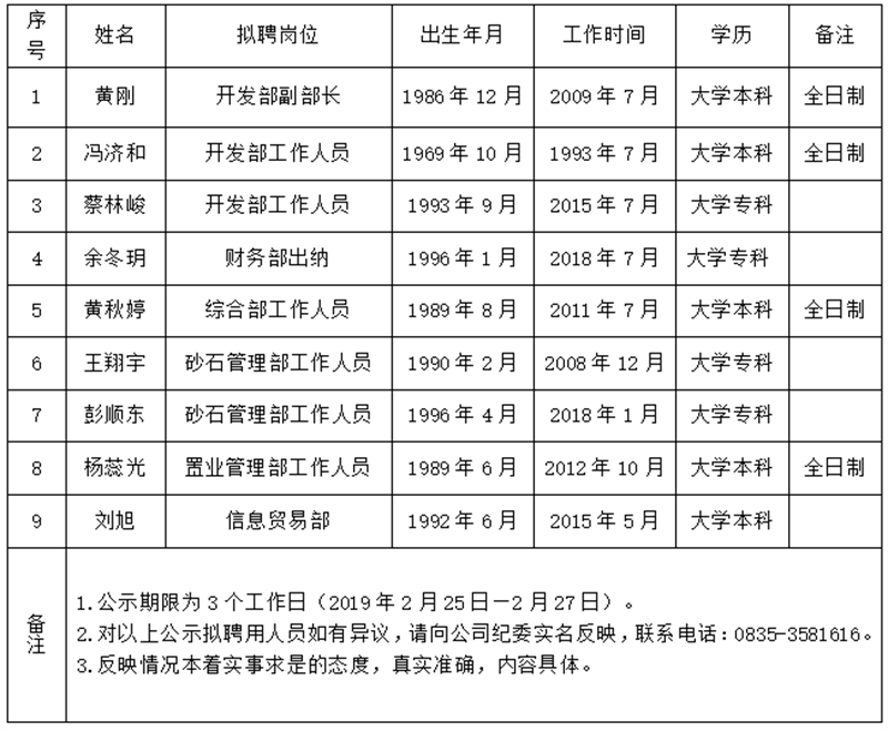通過公開報(bào)名、資格審查、筆試、面試等程序,經(jīng)雅安交建集團(tuán)運(yùn)通貿(mào)易有限公司研究,對(duì)以下