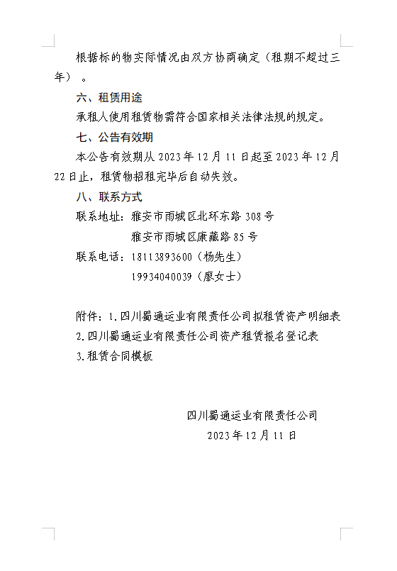 四川蜀通運業(yè)有限責任公司關于康藏路85號辦公樓4、5、7樓資產(chǎn)租賃公告附件