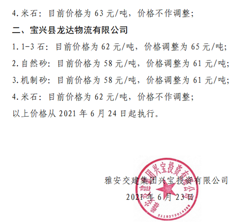 ÑŰ²½»½¨¼¯ˆF(tu¨¢n)ÔÆÊ¯¹«Ë¾É°Ê¯¹ÇÁÏäNÊÛƒr(ji¨¤)¸ñÇé›r±í£¨2021.6.24£©